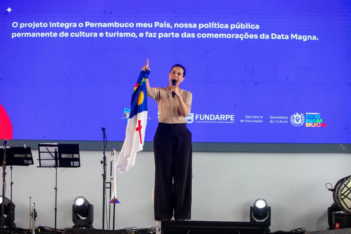 “Somos o nosso sentimento de pernambucanidade, de territorialidade, a força da nossa cultura. Agora a gente lança Várias Vozes, Um Só Hino, um projeto que, em abril, vai poder estar nas redes sociais, nos streams de música e também será lançado pelo Governo de Pernambuco para que a gente possa trabalhar a autoestima do povo pernambucano, garantir que a gente fale da nossa cultura, da nossa história”, afirmou a governadora Raquel Lyra.