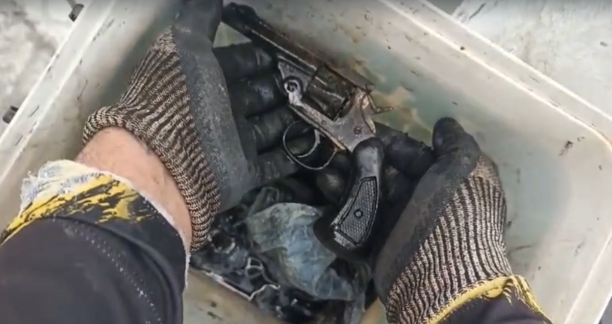 A "pescaria" foi realizada pelo designer gráfico Thiago Wanderley, que usa o equipamento chamado ímã de neodímio. Armas calibres 32 e 38 foram entregues à Polícia Federal, segundo ele