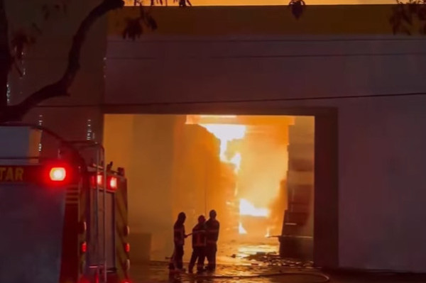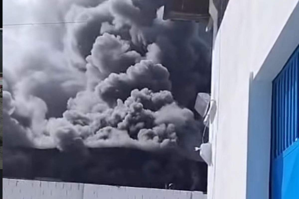 Incêndio que atingiu quatro galpões no bairro Indianápolis, em Caruaru, na quinta (12). De acordo com o Corpo de Bombeiros, há risco de colapso estrutural devido aos danos provocados pelo fogo