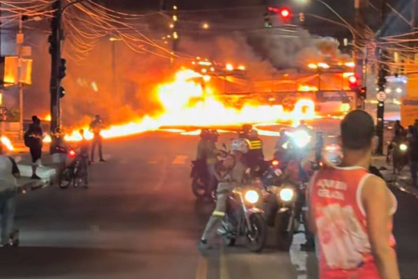 Um ônibus foi incendiado durante um protesto na noite desta quarta-feira (22), nas proximidades do SESI da Avenida Dois Rios, no bairro do Ibura, na Zona Sul do Recife. A manifestação provocou bloqueio total da via e deixou o trânsito completamente parado na região.