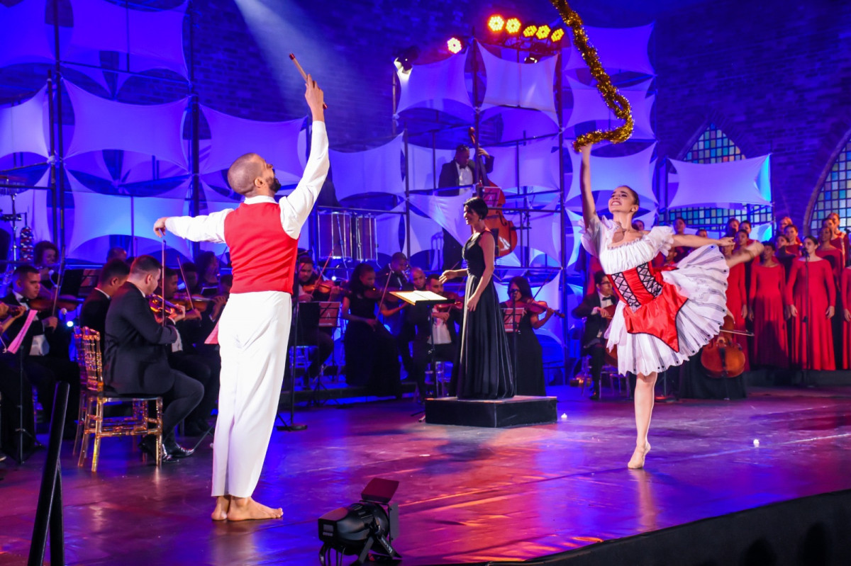 Com um elenco composto por 55 bailarinos-cantores, 35 músicos de orquestra, 4 solistas, 40 crianças no coro infantil e 10 bailarinos clássicos, o concerto mistura música e dança em apresentações que valorizam a tradição natalina. Toda a produção conta ainda com uma equipe técnica de 17 profissionais.