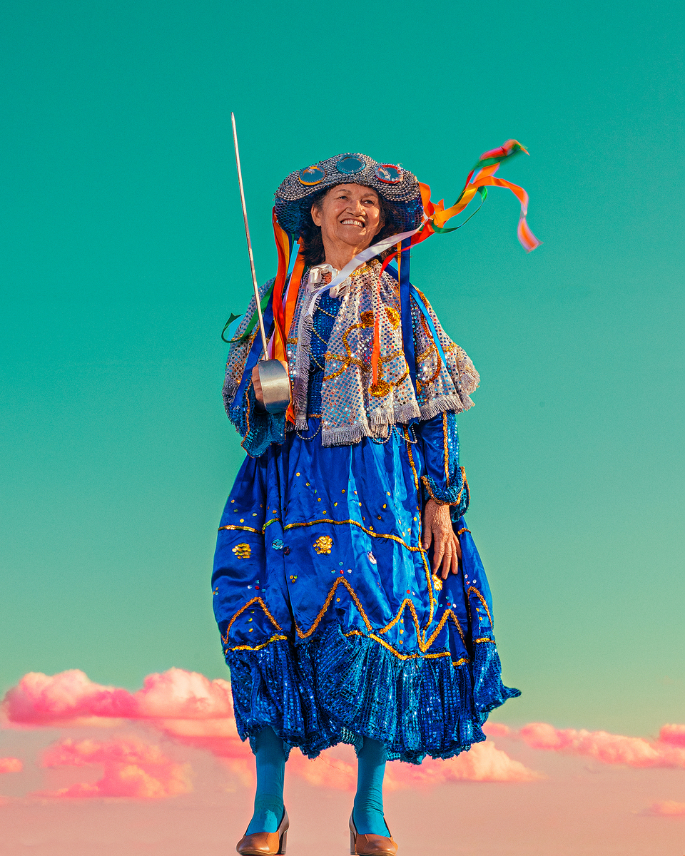 Como a primeira mulher a comandar um reisado, Dona Zefinha consolidou um marco na história da tradição em Garanhuns. Sua atuação afirma a presença feminina em uma manifestação que, por muito tempo, limitou as mulheres a funções secundárias ou as manteve invisibilizadas. “Uma coisa muito especial em relação ao trabalho dela é que ela mesma confecciona os figurinos. Então, dos três, acho que o figurino com mais riqueza de detalhes e acabamento é o da Dona Zefinha”, aponta Juliana.