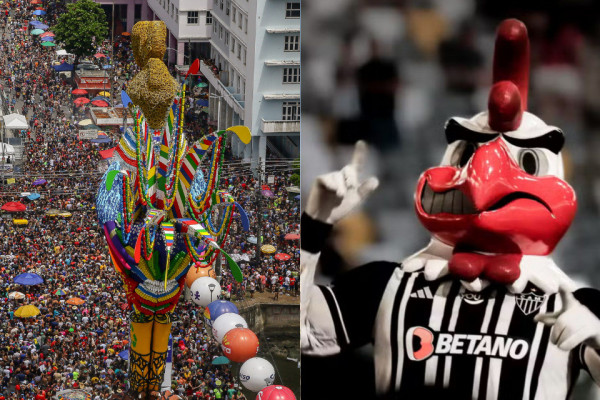 O Galo da Madrugada, clube de máscaras tradicional da folia de Pernambuco, considerado pelo Guinness World Records o maior bloco de carnaval do Brasil, enfrentou uma batalha judicial com o Clube Atlético Mineiro, o Galo, um dos maiores nomes do esporte nacional (Fotos: Rafael Vieira/DP e Pedro Click/Atlético-MG)