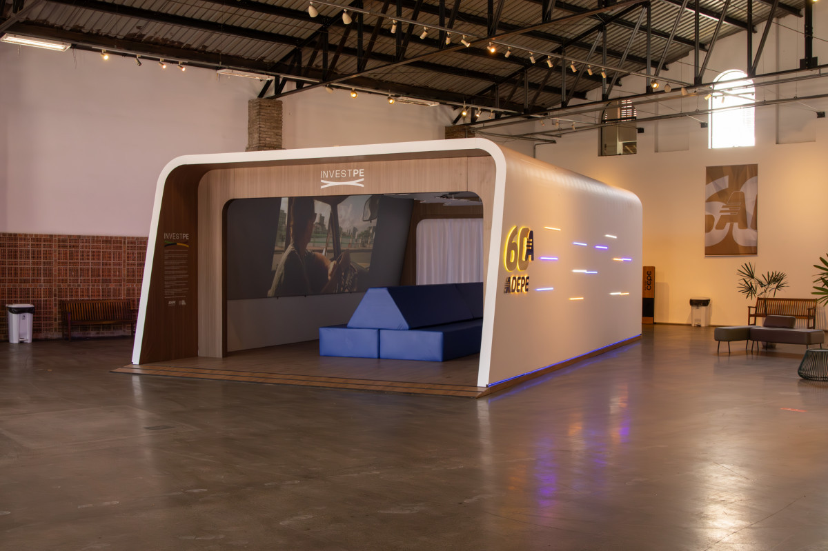 A instalação “Locomotiva Pernambuco”, que abriga o filme, foi criada pelo arquiteto Isac Filho e tem um formato que lembra um transporte futurista. A proposta é que os visitantes se sintam dentro de uma cápsula do tempo durante a exibição.