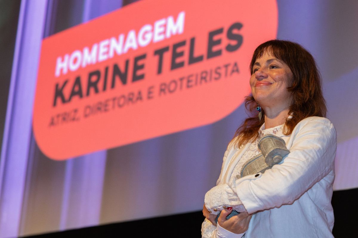 Homenageada da 29ª Mostra de Cinema de Tiradentes, evento que abriu oficialmente o calendário de festivais audiovisuais brasileiros, a atriz, roteirista e diretora Karine Teles não cansa de propor novos desafios ao seu trabalho e, por consequência, à percepção do público também. A fluminense, natural de Petrópolis, estuda teatro desde os 14 anos e, em 2010, fez o que seria um primeiro divisor de águas na carreira: o filme “Riscado”, de Gustavo Pizzi, com quem era casada.