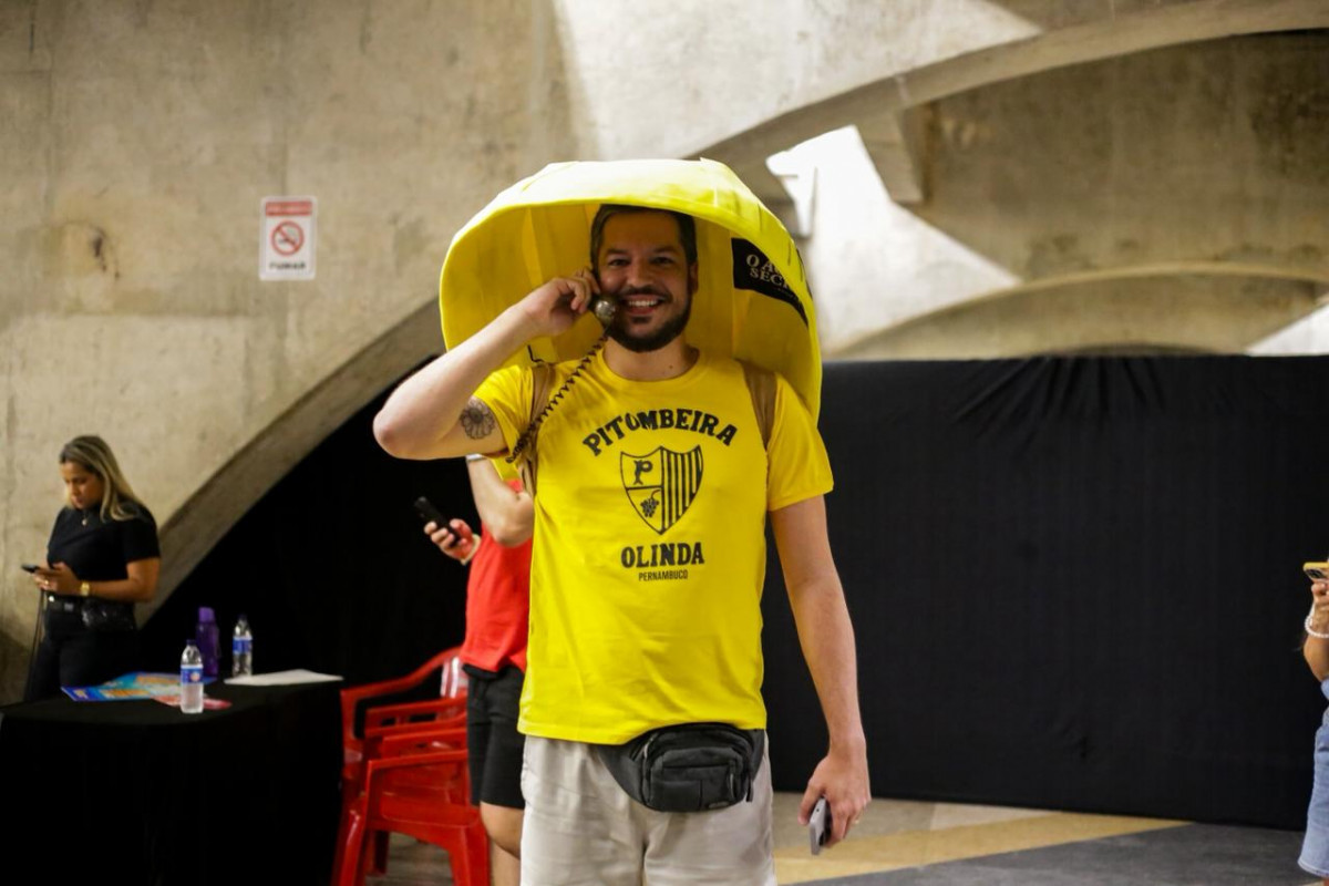 Na tradicional prévia "Enquanto Isso na Sala da Justiça", realizada nesta sexta-feira (30), no Centro de Convenções, a fantasia que mais se viu foi a do personagem Marcelo, protagonizado por Wagner Moura, em 'O Agente Secreto'. A camisa da Pitombeira, ícone do filme, virou tendência e ofuscou até mesmo os super-heróis.