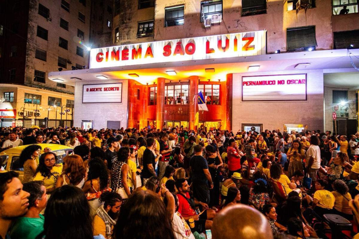 Cinema São Luiz, cenário de 'O Agente Secreto', recebe torcida organizada com cortejo do bloco Pitombeira e transmissão simultânea da cerimônia